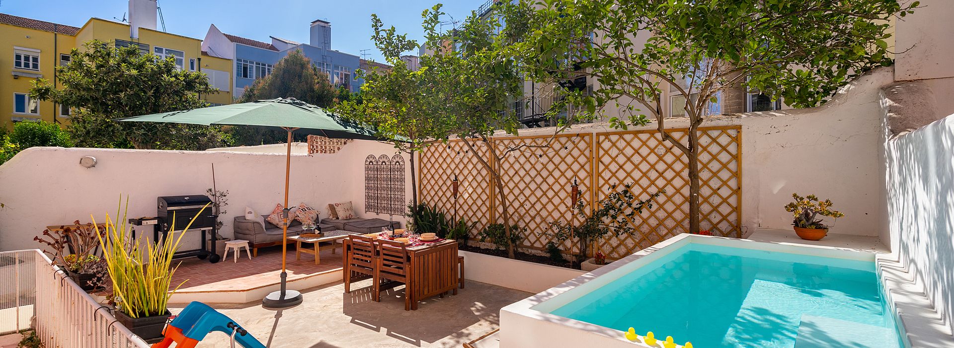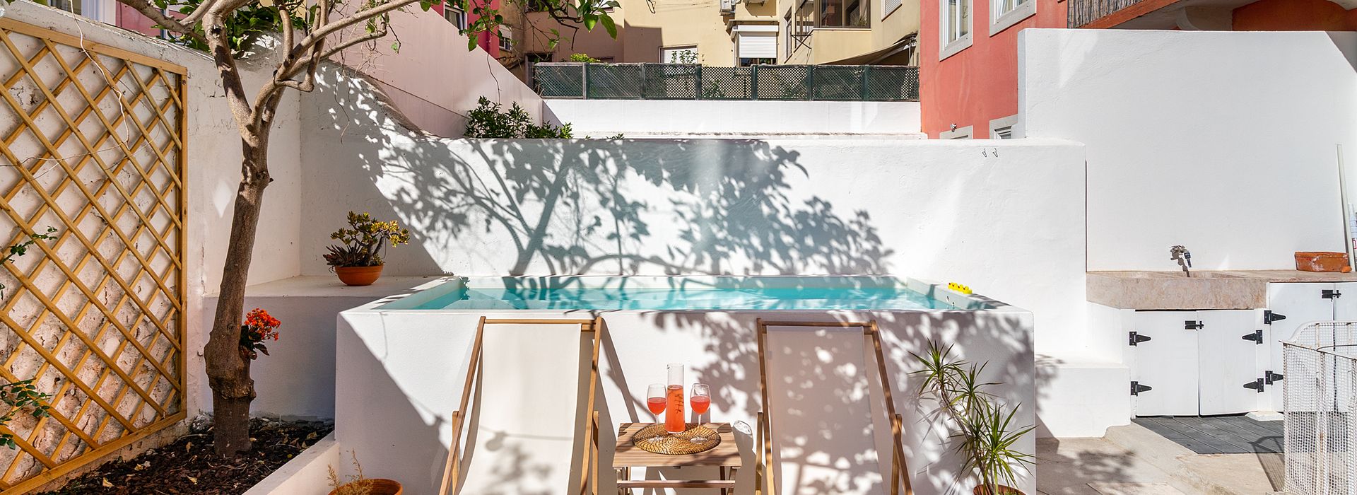 O jardim, com zona de refeições e lounge, é o cenário perfeito para pequenos-almoços tranquilos ou jantares ao ar livre. E quando o calor aperta, nada melhor do que um mergulho refrescante na piscina privativa.